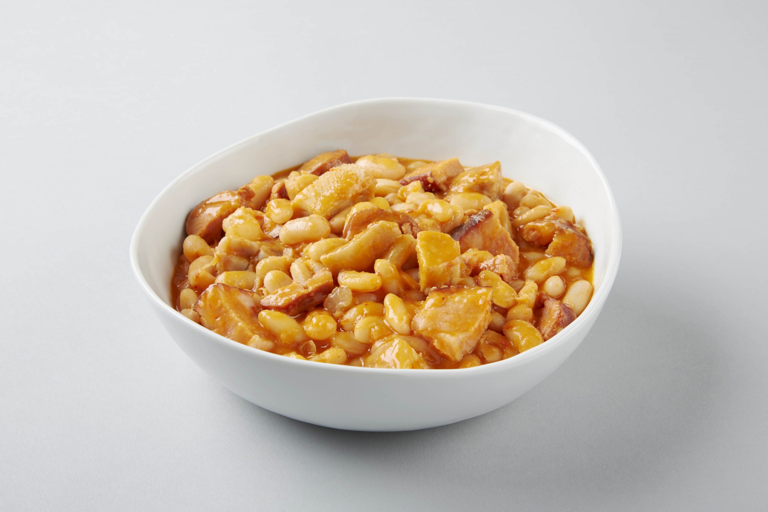 Tripe with pork pieces in a traditional Portuguese style stew sauce and white beans